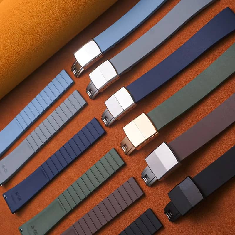 Disponibles en una amplia gama de colores cuidadosamente seleccionados, nuestros brazaletes FKM están diseñados para adaptarse a cualquier estilo y ocasión. Desde tonos clásicos como negro, gris o café hasta opciones vibrantes como rojo, verde o beige, cada color resalta la estética de tu reloj de forma única.